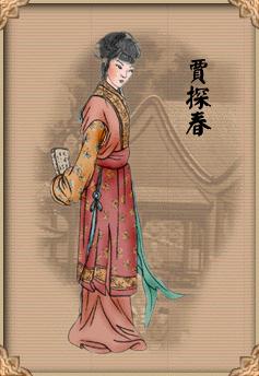 贾政与妾赵姨娘所生,贾环之姐,排行为贾府三小姐。她精明能干,有心机,能决断,连王夫人与凤姐都让她几分,还得了“玫瑰花”之诨名。她的封建等级观念特别强烈,所以对处于婢妾地位的生母赵姨娘轻蔑厌恶,冷酷无情。抄检大观园时,她为了在婢仆面前维护作主子的威严,令丫环秉烛开门而待,只许别人搜自己的箱柜,不许人动一下她丫头的东西。“心内没有成算的”王善保家的,不懂这一点,对探春动手动脚的,所以当场挨了她的一巴掌。探春对贾府面临的大厦将倾的危局颇有感触,她想用“兴利除弊”的微小改革来挽救,但无济于事。最后贾探春远嫁他乡。