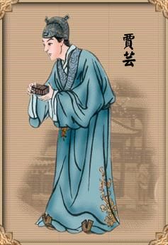 宁府的正派玄孙。他父母早亡,从小跟贾珍过活,比贾蓉生得还风流俊俏。虽然每日应名去上学,亦不过虚掩眼目而已,仍旧是斗鸡走狗,赏花阅柳。他上有贾珍溺爱,下有贾蓉匡助,越发自大起来。后成了贾府小戏班的总管,与小旦龄官相好。贾府败落后,他便偷典偷卖、酗酒聚赌,闹得更不像事了。