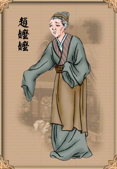 贾政之妾,贾探春和贾环的生母。因是偏房,她备受王夫人、凤姐等的欺辱,连亲生儿女也不把她当母亲看。为了报仇,在马道婆的暗示下,她花钱让马道婆作法,暗害王熙凤和宝玉。在贾府主子眼里,她是奴才,可她在丫头跟前,却总想摆主子的谱儿。当她得知芳官用茉莉粉当作蔷薇硝给贾环时,便气得眼红面青,赶到怡红院来打芳官,遭到藕官等四人一通“手撕头撞”,探春见了,对她又是一番数落。贾母死后,她送灵至铁槛寺时,突然暴病而亡。