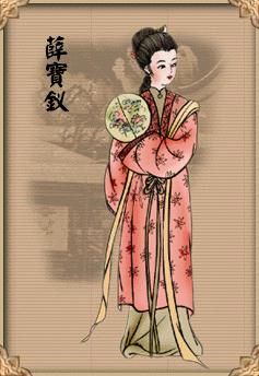 皇商之女,小时跟父亲跑过不少地方。她是薛姨妈的侄女,薛蝌的胞妹。她长得十分美貌,贾母甚是喜爱,夸她比画上的还好看。王夫人也认她为乾女儿。她自幼读书识字,本性聪敏,在大观园里曾作《怀古绝句十首》。后嫁都中梅翰林之子。