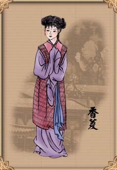 薛蟠之妾,原名甄英莲,甄士隐的女儿。三岁那年元宵,在看社火花灯时被骗子拐走,十二三岁时,被薛蟠强买为妾,改名香菱。她生得袅娜纤巧,做人行事又温柔安静,夏金桂极为嫉妒她。香菱备受夏金桂的折磨,不仅名字被改为秋菱,还险遭谋害。薛蟠出狱后,把香菱扶了正,后难产而死。