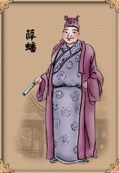 表字文龙,外号“呆霸王”,薛姨妈的儿子。因幼年丧父,寡母纵容溺爱,终日唯有斗鸡走马,游山玩水而已。虽上过学,不过略识几个字,虽是皇商,却全然不知经纪世事。他骄横跋扈,倚财仗势,强买英莲〈即英莲〉为妾,喝令手下豪奴打死冯渊;他荒淫无耻,喜好男色,在贾府家学里,假说上学去勾搭学生,在赖大家的酒席上,碰到柳湘莲,又动了勾引之意,被柳湘莲打了个半死。娶妻夏金桂后,又把其陪房丫头宝蟾勾搭上手。在一次去南边置货时,途经一小酒店喝酒,因堂倌换酒迟了些,就一时性起,拿起酒碗照他打去,一下子就把堂倌打死了。这次薛蟠被判了死罪,后因贾、薛两家托人和贿赂,又被放出。