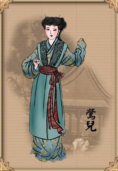 薛宝钗的丫头。原名黄金莺,因薛宝钗嫌拗口,改叫莺儿。她甚是乖巧,薛宝钗在观看通灵宝玉,念著玉上所镌之文“莫失莫忘,仙寿恒昌”时,她马上想到这和小姐项圈上的两句话是一对儿。她手特巧,擅长打络子、编花篮等,还颇懂色彩的搭配。薛宝钗嫁给宝玉后,她就成了薛宝钗的陪房丫头。