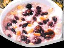 把各种米洗净,放在锅里加水熬粥。将豆类洗净煮熟,待锅内米类六成熟时放在豆类同煮,待豆类八成熟时,再放入各种果料煮至粥有黏性即成(各种干果要去皮、核、莲子要去芯,各种配料块形的大小要尽量保持一致。)